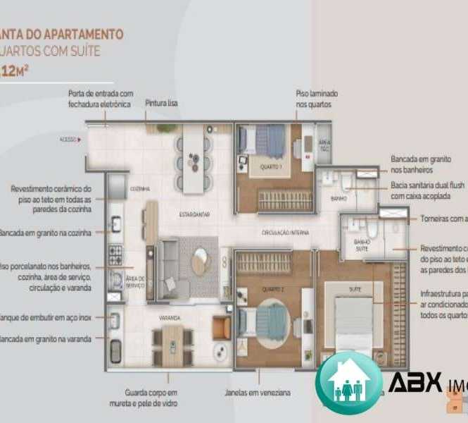 3 dormitórios sendo 1 suíte, 1 sala, 1 banheiro, 2 vagas