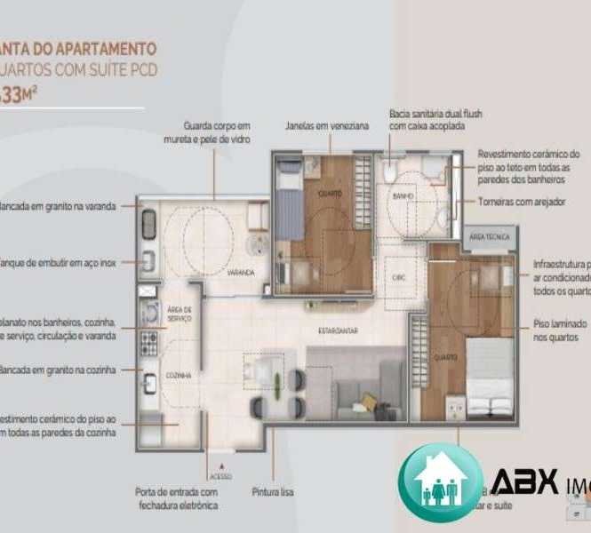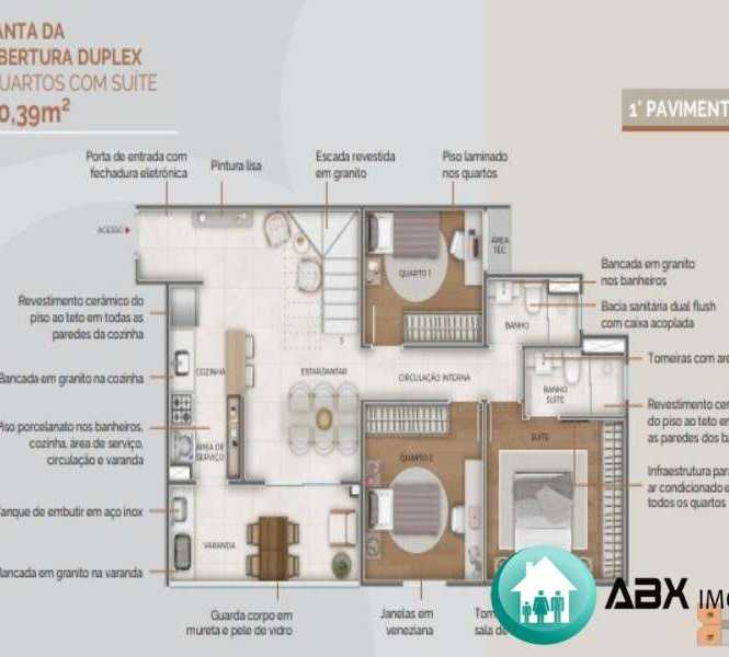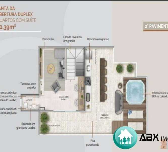 Planta da cobertura duplex 3 quartos com suíte 160,39m²