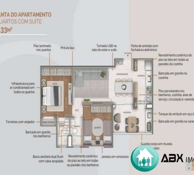 2 dormitórios sendo 1 suíte, 1 sala, 1 banheiro, 2 vagas