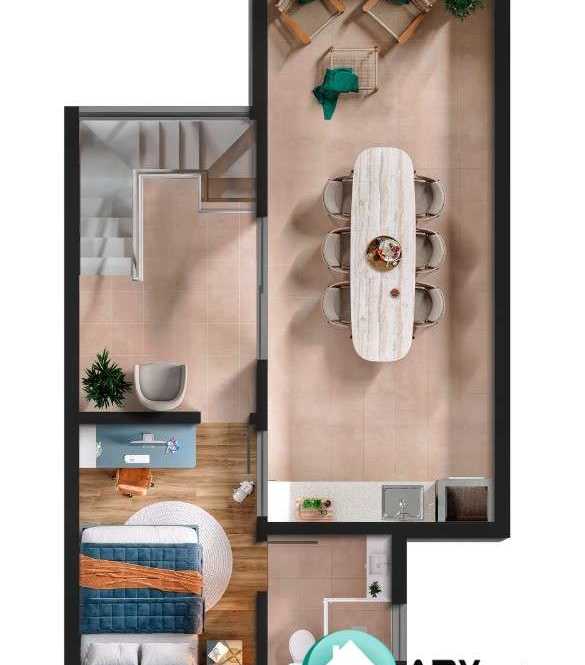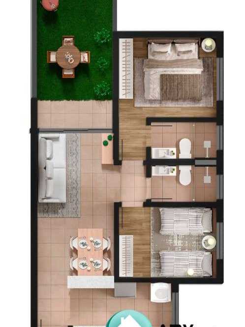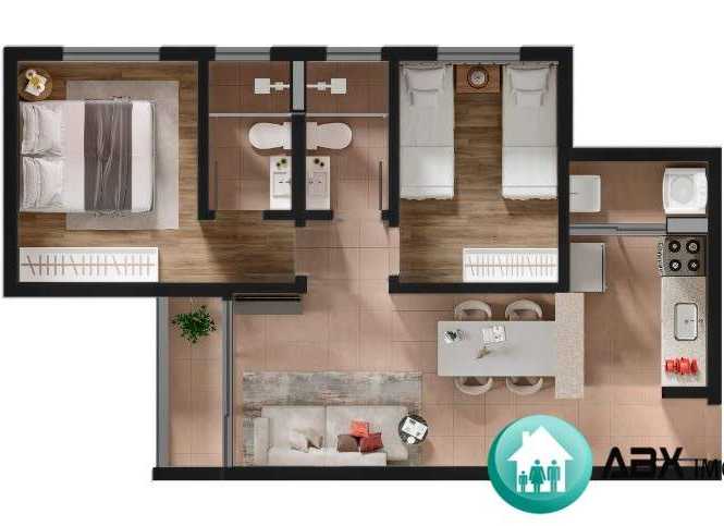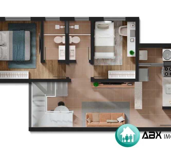 2 dormitórios sendo 1 suíte, 1 sala, 1 banheiro, 1 vaga